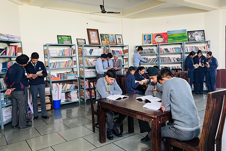 The library houses a wide collection of academic books, storybooks, reference materials, and digital resources, providing a peaceful and resourceful learning environment.